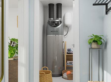 The EcoGen 200 uses heat pump technology to convert thermal energy into low cost renewable heated water on demand.